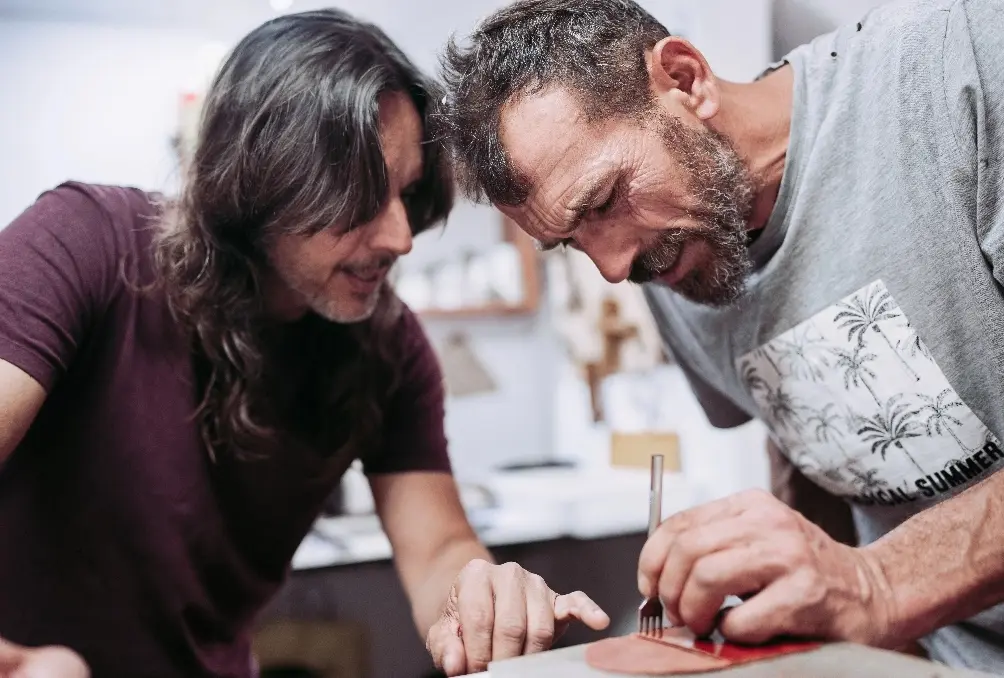 En nuestro pequeño taller, cada artículo está pensado para acompañarte muchos años. No seguimos modas, sino que apostamos por la atemporalidad, la funcionalidad y la belleza de lo bien hecho. Solo usamos pieles nacionales de primera calidad y reutilizamos retales para reducir residuos, porque la sostenibilidad es una responsabilidad real para nosotros. El paso del tiempo solo hace más bellas nuestras piezas, dándoles esa pátina y carácter que solo la artesanía auténtica puede ofrecer.